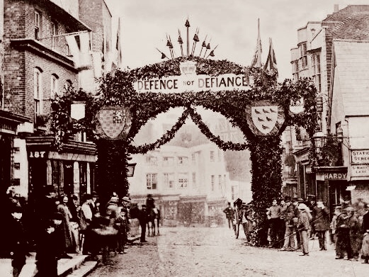 as the unequivocal county emblem. Another 19th century example of the martlets in use, is their appearance on a decorated arch, at right, in Lewes