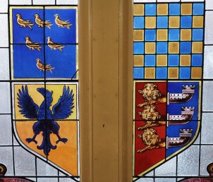 The evidence for a de Radynden origin of the Sussex emblem therefore is strong, however two further candidates for the source of the Sussex arms can be considered. Amongst the work of Nicholas Charles or Carles, a seventeenth century officer of arms, are notes about the arms decorating “Wythiham” Church in Sussex. His account, which preceded the church’s near destruction by lightning strike in June 1663 where the martlets noted by Charles were lost, was included in the 1837 publication, “Collectanea Topographica Et Genealogica, Volume 4”: it includes a reference to a coat of arms described as “Azure, six martlets, 3,2,1, Or.”