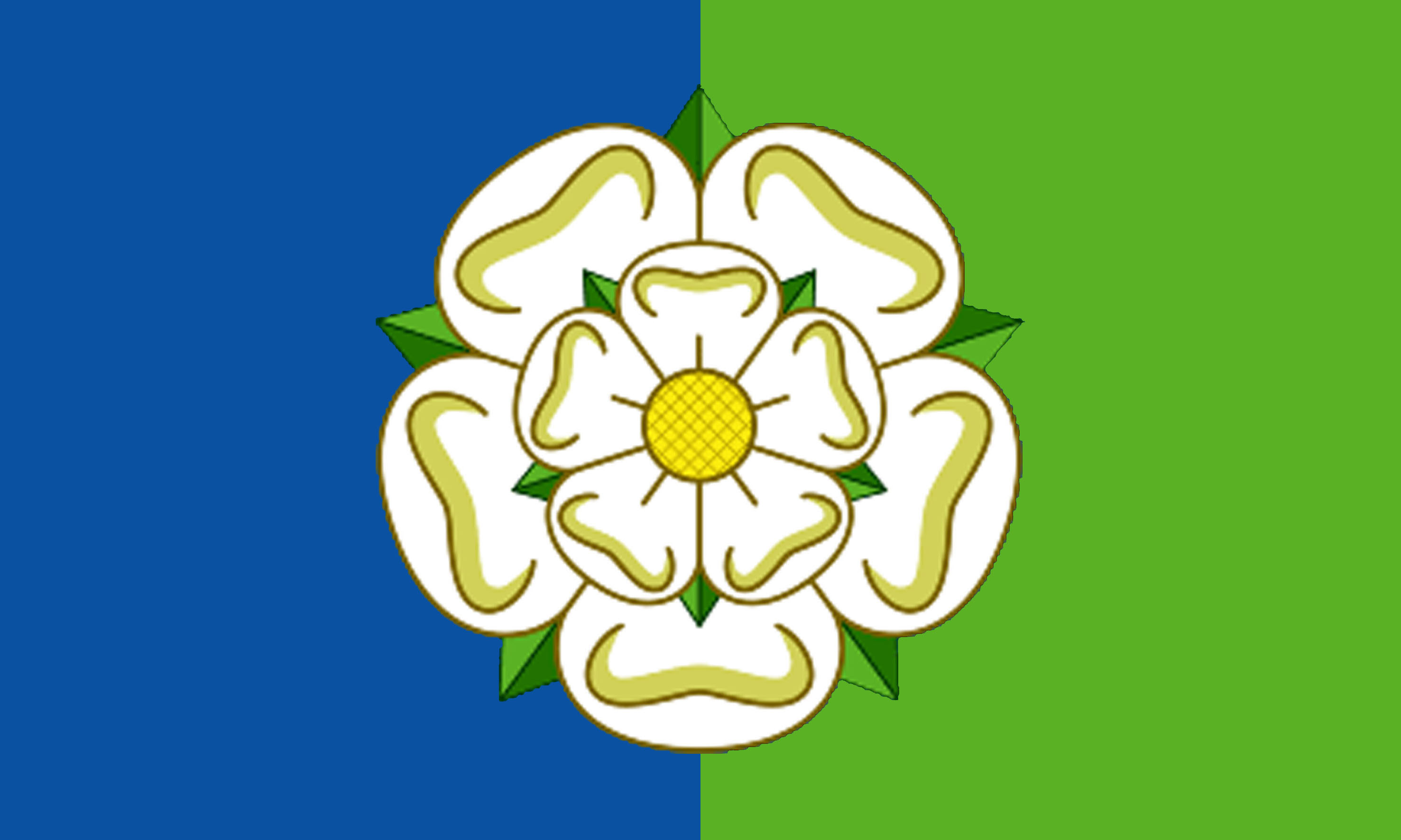 The flag features a Yorkshire white rose, displayed in the East Riding style with one sepal at the top, set against a bi-colour of blue at the hoist, representing the sea and the historic maritime activities of the East Riding and green in the fly symbolising the locality’s rich agricultural land. Additionally, the blue hoist colour signifies the East Riding’s connection to the whole of Yorkshire whilst the green is placed towards the fly to represent its position in the east of the county.