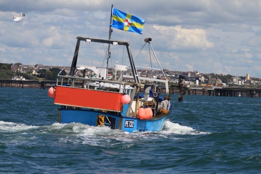 A Pembrokeshire fishing vessel flies the county flag.