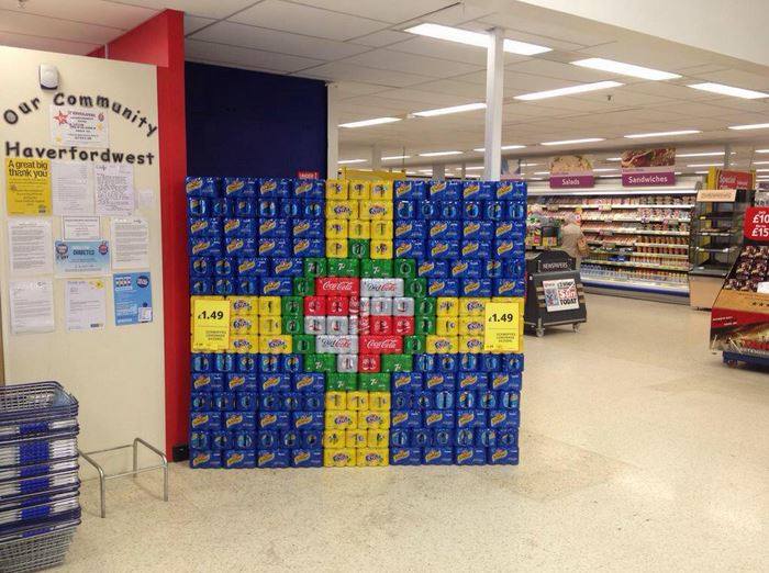 The staff of Tesco’s, Haverfordwest, built their county flag in drink cans!