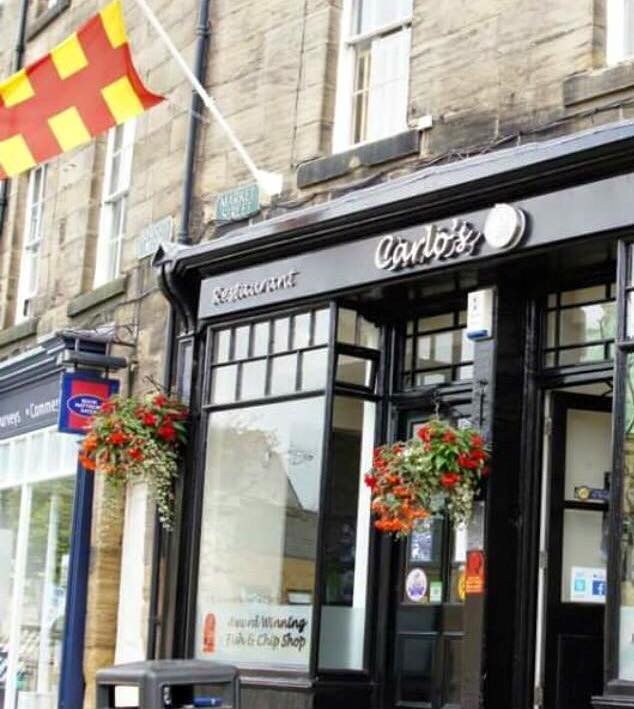 The Northumberland flag on a high street.