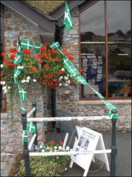The flag is seen in profusion outside the Dartmouth tourist centre