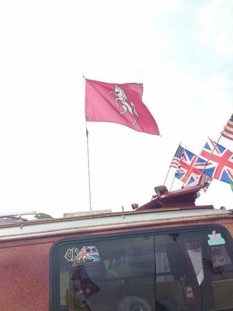Kent flags flying at the Cuckoo Fayre steam engine show, Laughton Showground, Sussex. 1