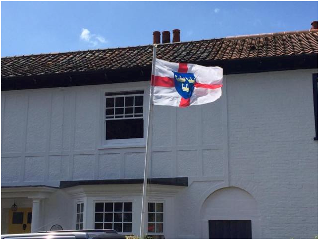 Over the centuries however, the saint’s specific associations with Suffolk have consolidated use of his arms, primarily as a county emblem for the land of the South Folk, resulting in their deployment as Suffolk’s county flag.