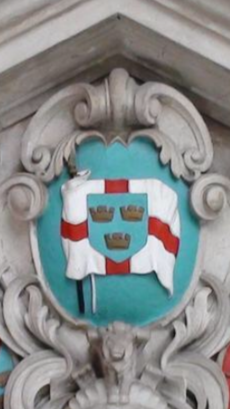 The theme of the three crowns is also evident in local heraldry; they appear in the arms of the diocese of Ely