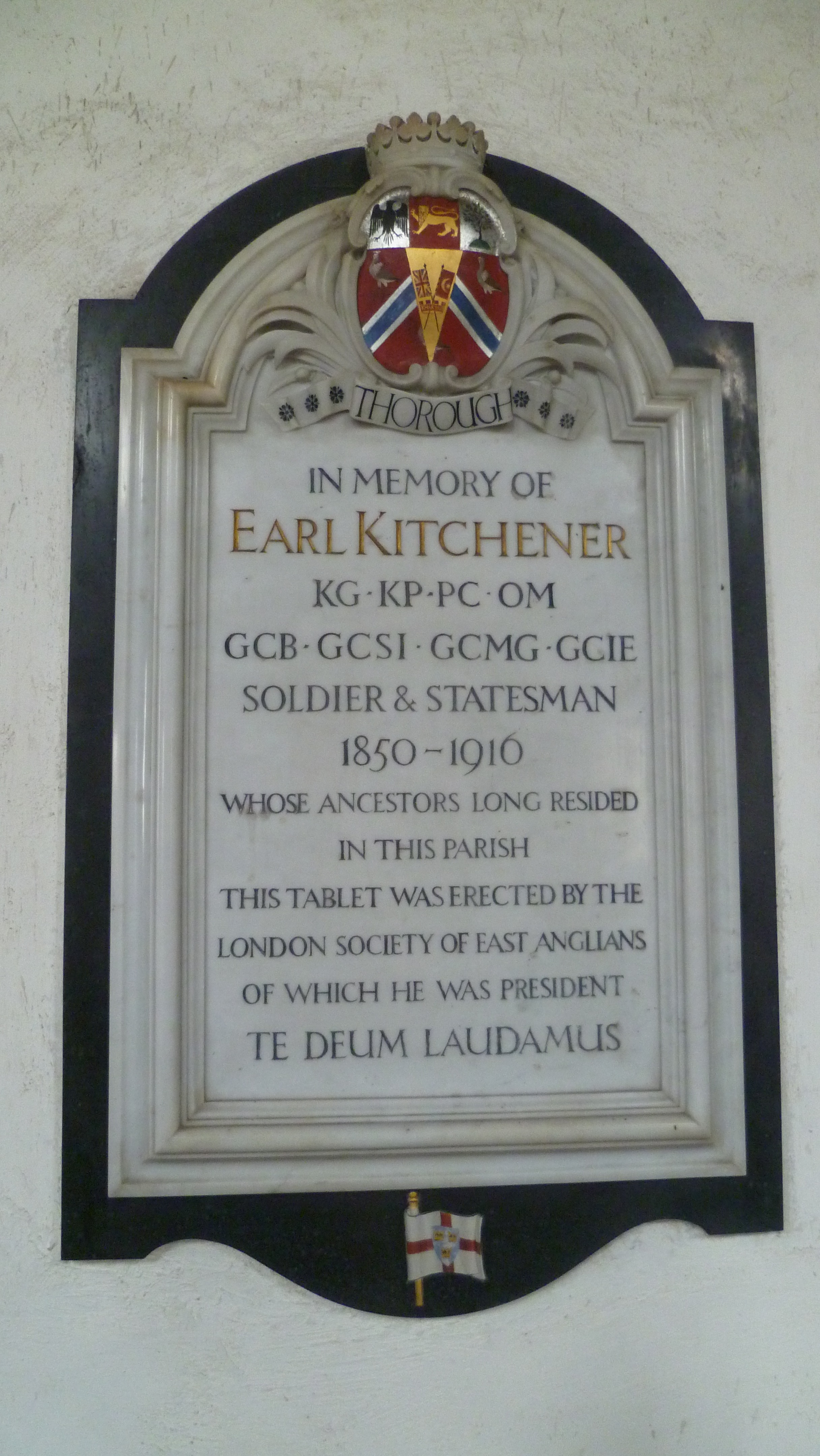 The London Society of East Anglians was founded in 1895 “For the promotion of good fellowship and the encouragement of local patriotism.” but seems to have ceased to function during World War Two. Lord Kitchener was perhaps its most illustrious member, a memorial to him in St. Mary the Virgin Church in Lakenheath, Suffolk, erected by the society, includes an image of the East Anglia flag at its base