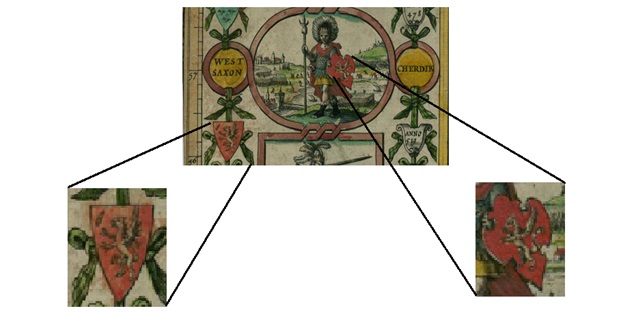 is depicted by Speed in the same work, to represent the aforementioned Uther Pendragon, here ascribed just the one dragon but nonetheless, exhibiting an understanding that the symbol was used by the Saxons’ Celtic precursors.