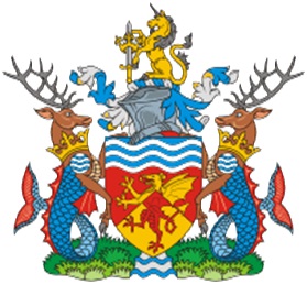 The flag at left above, appears to combine the colours of the armorial banner in a form more reminiscent of the council’s modern logo, itself an adaptation, in various forms,