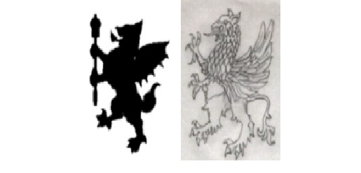 Additionally it is possible that the “rampant” stance of the dragon appearing on the arms of Somerset council, especially when depicted in its modern “logo” style, below left, makes it resemble a griffin, below right.