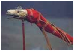 The pole mounted dragon is seen to be “breathing” fire, created by a mass of pitch and tow! Germanic nations too had a tradition of dragon veneration, also seen, for example, in the dragonish adornment found on Germanic items such as the shield recovered from Sutton Hoo