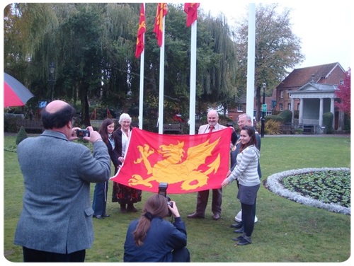 In the following years the society encountered some difficulty flying the flag, hampered by bureaucracy and the reluctance of local officials. In 2010, the Wessex Society sought to raise its flag on the 1,111th anniversary of the death of Alfred the Great, the renowned king of Wessex. The society approached the Winchester Guild Hall to mark the occasion by flying for just one day, the flag of Alfred’s Kingdom. The proposal was initially turned down. After considerable negotiation and assistance from the locally based S L S Group events company, a compromise was reached and permission was granted to fly the flag in the grounds adjacent to the guildhall. Thanks to the generosity of S L S Group, four flagpoles, symbolising the four figure “1”s of the “1,111th” anniversary were erected, each bearing a Wessex wyvern.
