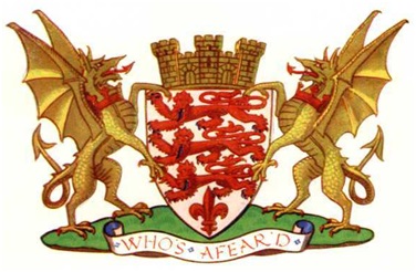 based on the same Speed depiction of a golden dragon on a red shield and then the same pattern as unofficial arms. These were later modified by the College of Arms in 1911, into a gold shield with a red dragon