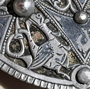 The brooch is a large silver and copper alloy disc dating from about AD 800 to 900, with interlaced animal and plant designs, including wyverns (!)
