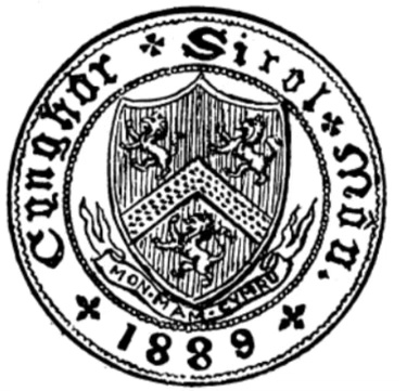 encircled by the words “Môn Mam Cymru” (Anglesey Mother of Wales), “Cynghor Sirol Môn” (Anglesey County Council), and the date, 1904; and can be found on the ceiling of the Shankland Reading Room at Bangor University, amidst a number of emblems representing the counties of Wales