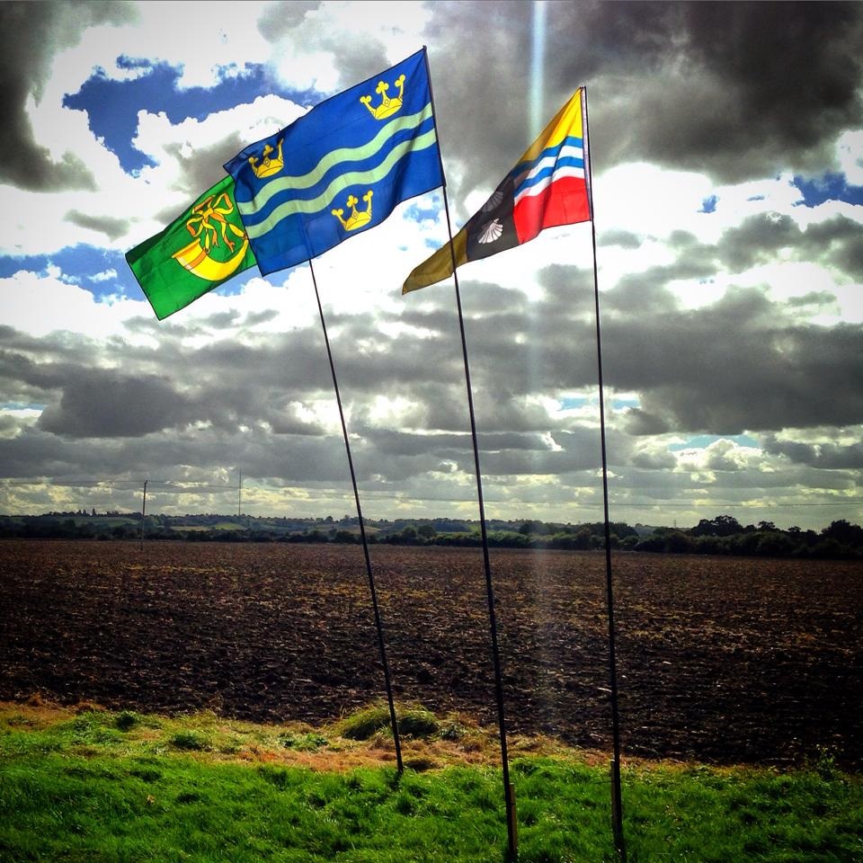 alongside the flags of Lincolnshire and Northamptonshire at the “tripoint” where all three counties meet and here
