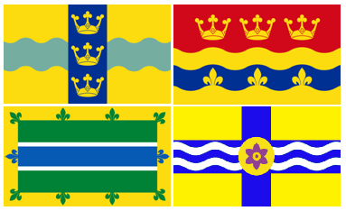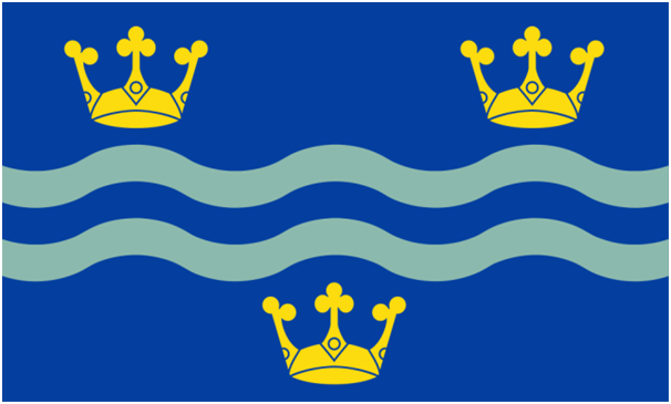 formed from the latest set of arms awarded to Cambridgeshire County Council, was commercially marketed as “Cambridgeshire flag”. In fact this banner represents just the county council which is the only body that may use it. It has never represented the county as an entity.