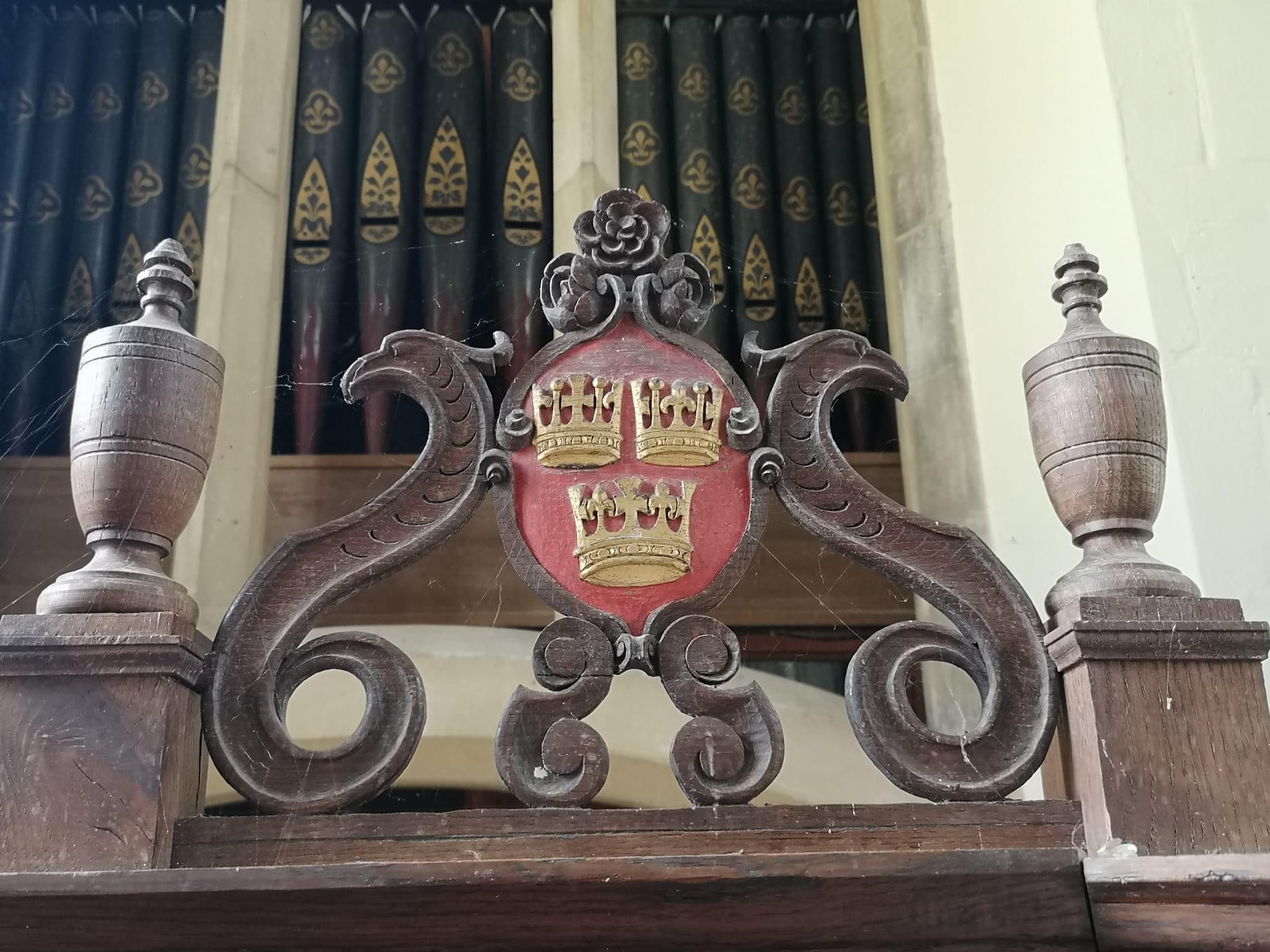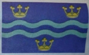 as part of the decor of a church in the locality. These crowns were retained in the Ely council’s arms, along with white and blue wavy lines, indicative of the abundant local waterways, found in this territory termed an “isle”.