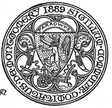the lower half being a red lion on gold, to represent Montgomeryshire.