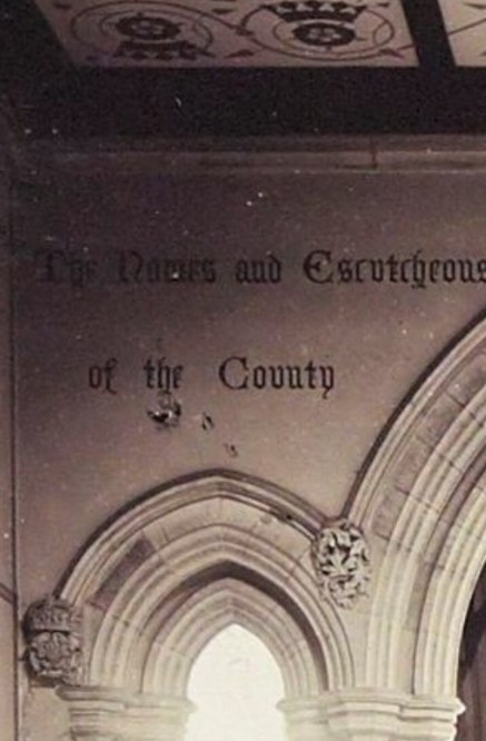 reversing the pattern found on the lower half of the shield, in the the civic arms borne by the city council, as seen above. This perhaps reflects the county’s use of a variety of different roses through the years and the specific use of a white one by various bodies, as demonstrated