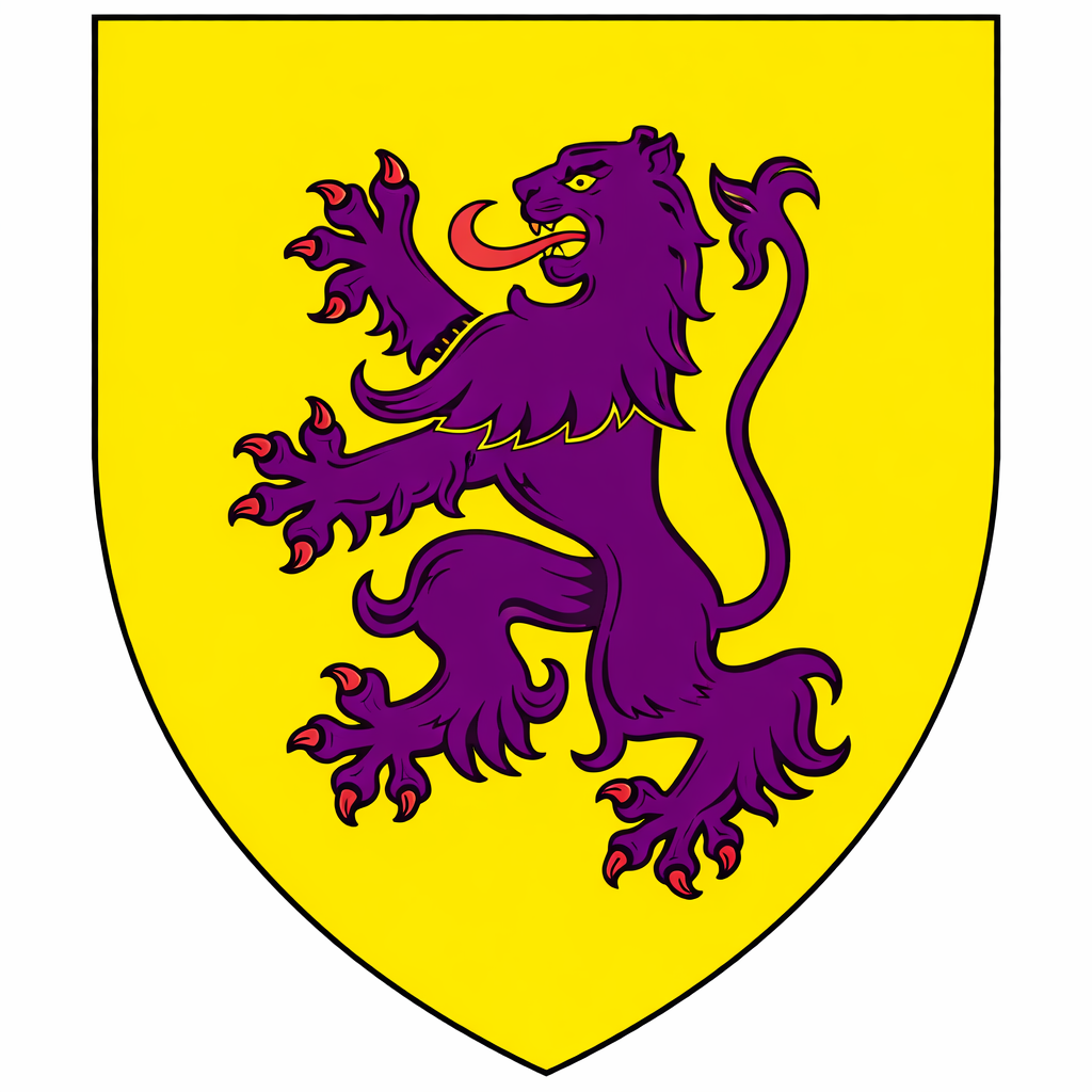 Whilst several sources have suggested that the lion derives from the arms of Henry de Lacy, Earl of Lincoln, who built Denbigh Castle, it should be considered that the castle was constructed as an instrument of suppression of the local population and it would therefore be rather peculiar for the council’s arms to celebrate this aspect of the locality’s history. Additionally the De Lacy arms were unequivocally acknowledged as being yellow with a rather unusual, distinctly purple lion.