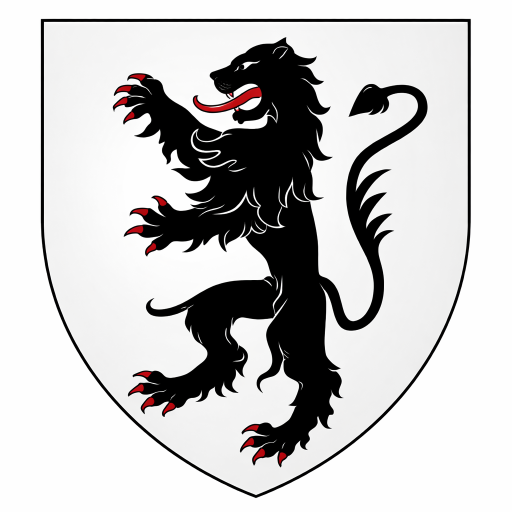 More likely is that the lion recalls the arms, a black lion rampant on a white field,