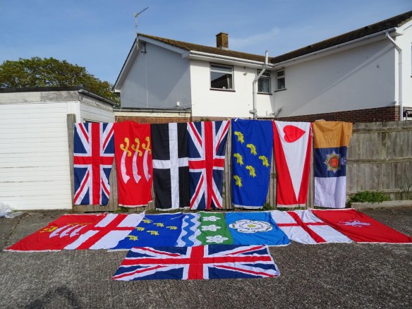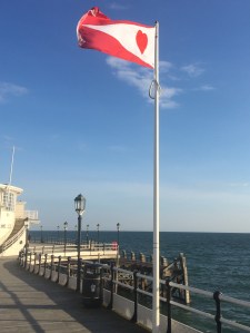 of flags gathered for raising on the pier at Worthing, Sussex