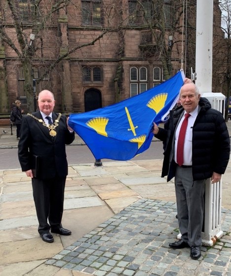 “Happy Cheshire Day!. The day will be marked by The Lord Mayor of Chester, Councillor Martyn Delaney and Chairman of Cheshire West and Chester Council, Councillor Bob Rudd raising the County flag in Chester Town Hall Square.